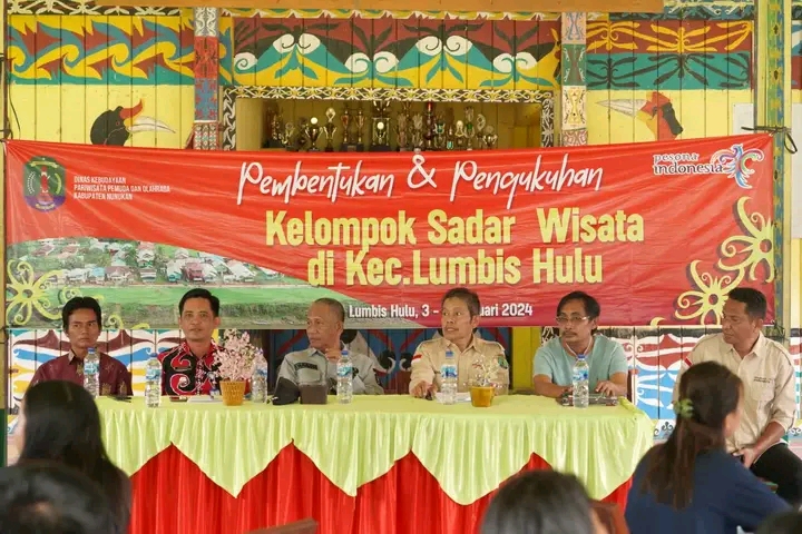 NUNUKAN- Mewakili Bupati Nunukan Hj. Asmin Laura, Kepala Dinas Kebudayaan, Kepemudaan dan Olahraga serta Pariwisata, Kab. Nunukan didampingi Camat Lumbis Hulu membuka acara pembentukan sekaligus pengukuhan Kelompok Sadar Wisata di Kecamatan Lumbis Hulu, Sabtu (03/02).