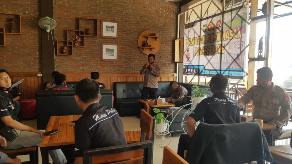 Pelatihan kehumasan yang diselenggarakan Kepolisian Resor Bone merupakan pelatihan untuk meningkatkan kemampuan personel Polri dalam komunikasi dan publikasi secara langsung atau melalui media social.