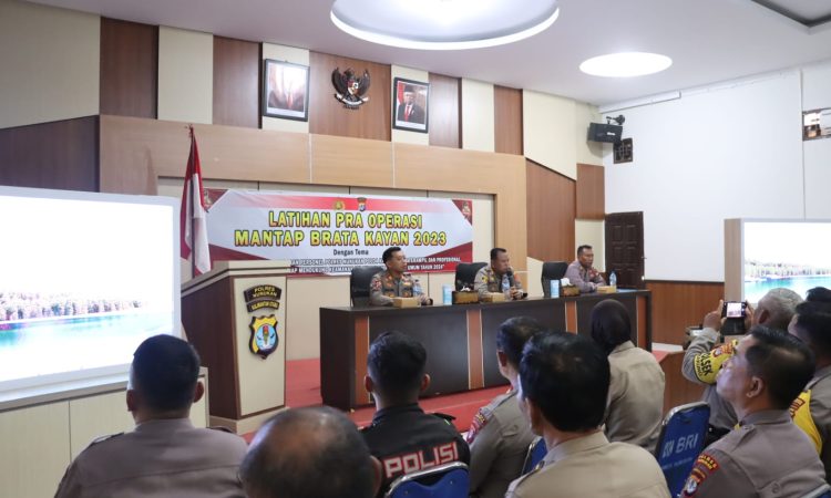 NUNUKAN – Jelang Pemilu Tahun 2024 Polres Nunukan gelar Latpra Ops Mantap Brata Kayan Tahun 2023-2024 di ruang Aula Sebatik Polres Nunukan. Kamis (12/10/2023).