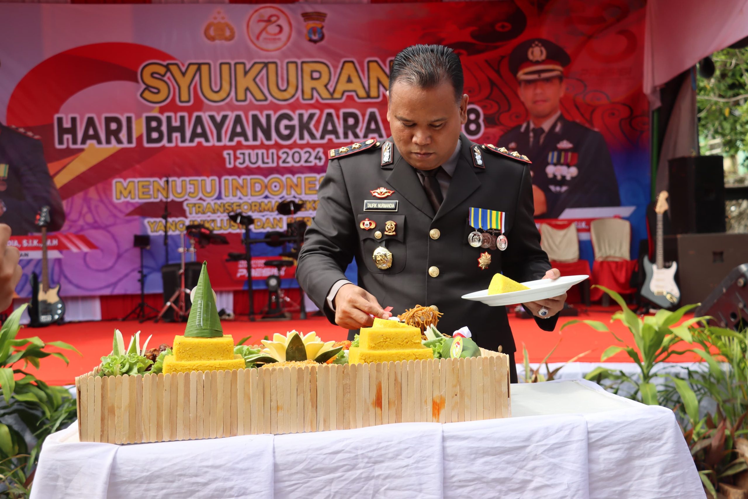 Rangkaian kegiatan dimulai dengan upacara peringatan hingga agenda seremonial yang diantaranya pemberian tali asih dan juga beberapa acara hiburan dalam rangka memperingati hari Bhayangkara ke-78.