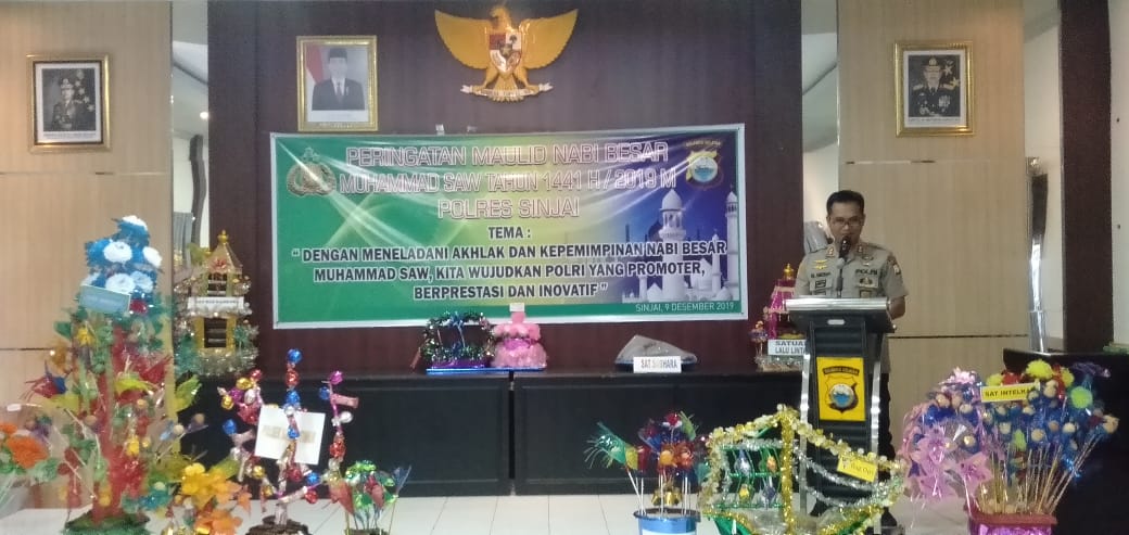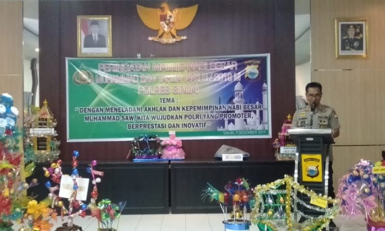 Selanjutnya sambutan Kapolres Sinjai, Ajun Komisaris Besar Polisi (Akbp) Sebpril Sesa, S.Ik yang intinya mengharapkan dengan kegiatan ini dapat menjadi motivasi bagi seluruh personil Polres Sinjai untuk senantiasa meningkatkan keimanan dan ketakwaan kepada Allah SWT, meningkatkan kinerja, pendorong semangat untuk bekerja keras, berprestasi, tulus dan ikhlas serta memiliki etika akhlak dan moral sebagaimana yang telah dicontohkan oleh Nabi Muhammad SAW sesuai tema peringatan pada tahun ini.