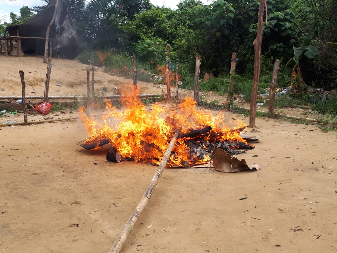 Kasubsektor Sebatik Tengah Iptu Satino bersama Bati Tuud Koramil 0911-02/Sbt Serma Rujito beserta 2 anggota staf Babinsa Sekecamatan Sebatik tengah Bhabinkamtibmas Sekecamatan Sebatik tengah dan anggota POLRI dari subsektor Ajikuning 5 personel anggota TNI koramil Sebatik Utara 7 personel,saat dilakukan pembokaran gelanggang judi sabung ayam tersebut.