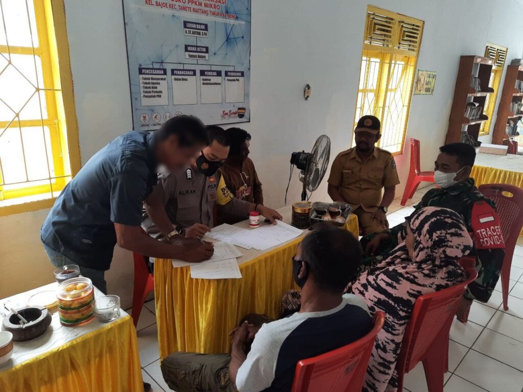 Menghindari terjadinya tindak pidana, 3 pilar kamtibmas bertindak cepat dengan mempertemukan kedua belah pihak di Kantor Lurah Bajoe, Kecamatan Tanete Riattang Timur, Kabupaten Bone untuk dilakukan mediasi. “Senin (17/5/2021).