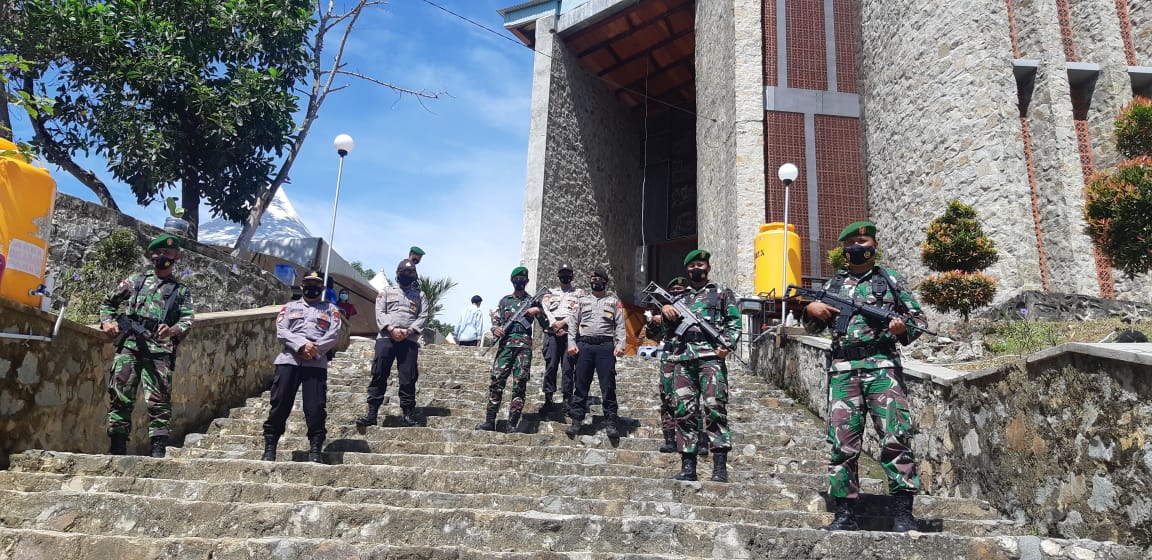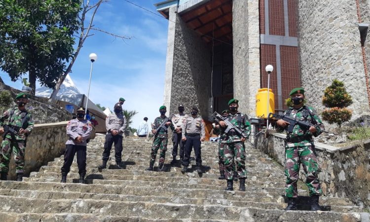 NUNUKAN – Kembali Personil Polri- TNI Kabupaten Nununukan melakukan Pengamanan Rangkean Ibadah Misa Paskah di Gereja di Kabupaten Nununukan ( Minggu/4/4/2021)