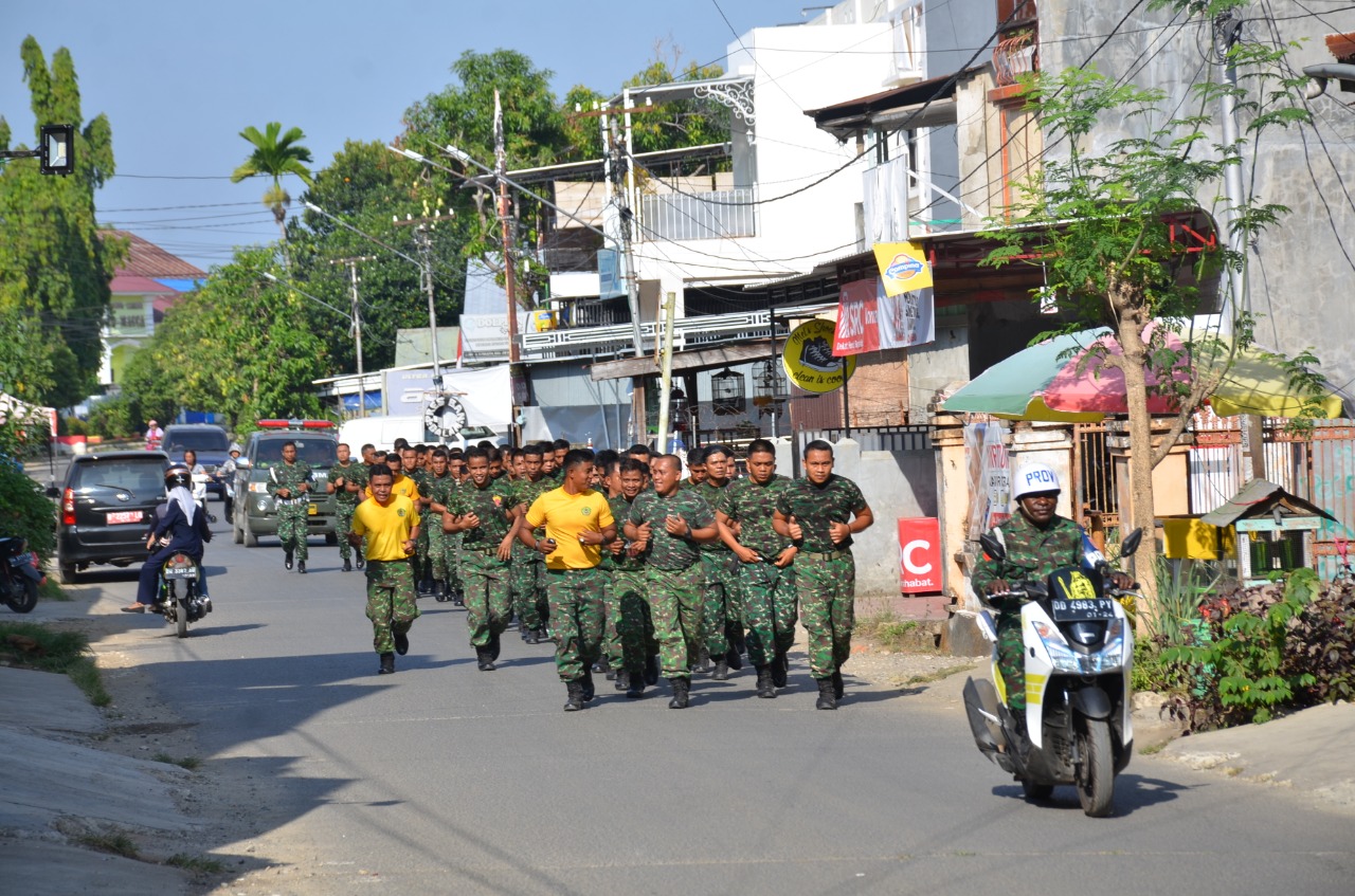 Kali ini Prajurit Korem 141/Tp akan melaksanakan lari jalan dengan menepuh jarak 5 Km, dengan rute jalan mengelilingi kota Watampone, namun sebelumnya dilaksanakan pemanasan yang dipimpin oleh Bajasrem 141/Tp serka andi Bambang di lapangan Makorem 141/Tp.