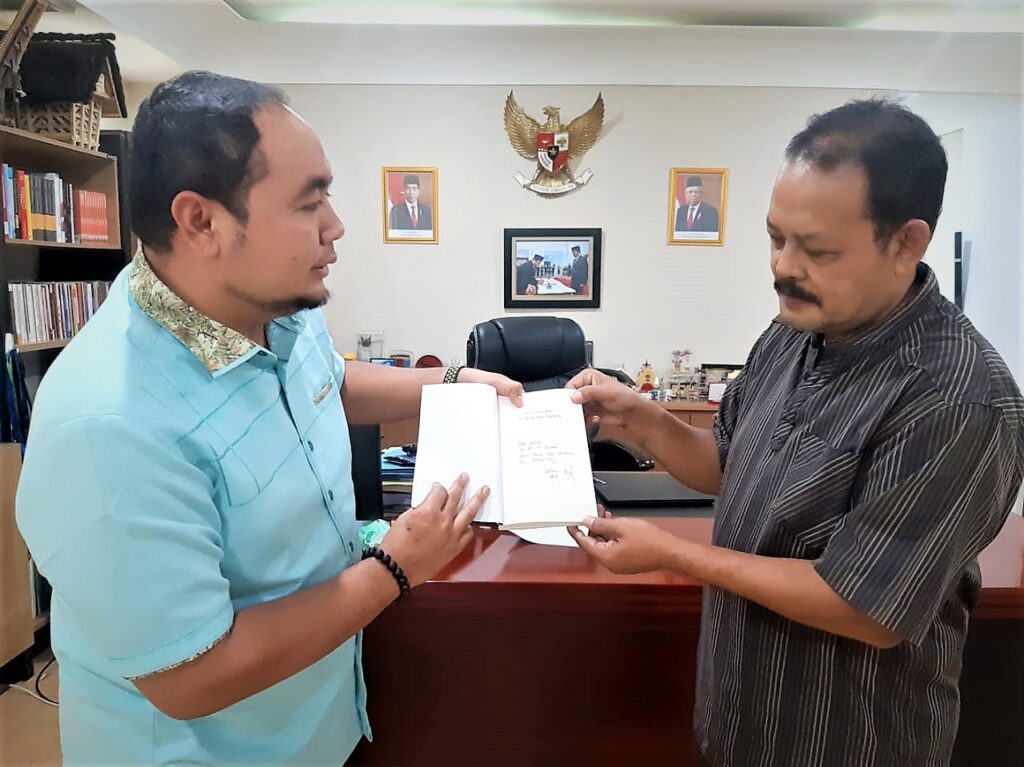 saat menyampaikan Buah Tangan Buku “Membumikan Pengawasan Pemilu” kepada dr. Ali Mahsun ATMO, M. Biomed., Presiden Gumregah Bakti Nusantara (GBN) di Jakarta, Kamis, 24 Juni 2021.