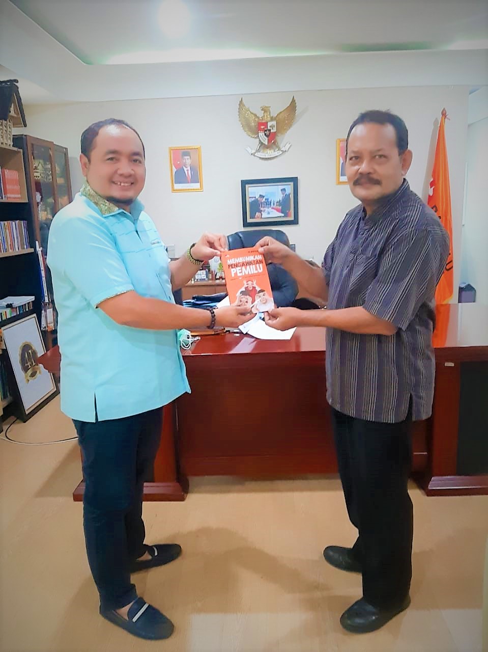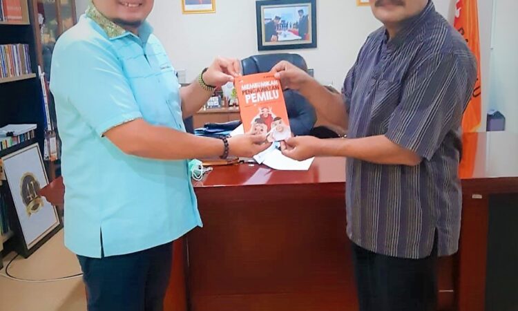 saat menyampaikan Buah Tangan Buku “Membumikan Pengawasan Pemilu” kepada dr. Ali Mahsun ATMO, M. Biomed., Presiden Gumregah Bakti Nusantara (GBN) di Jakarta, Kamis, 24 Juni 2021.