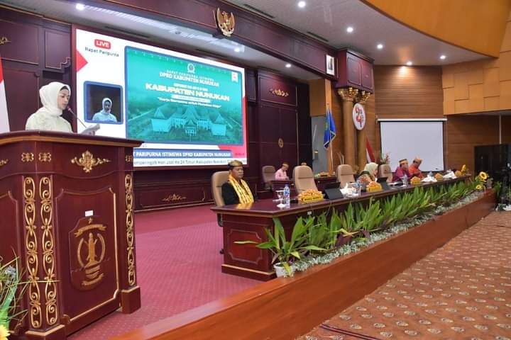 NUNUKAN – Demikian sebait pantun mengawali pidato Bupati Nunukan, Hj. Asmin Laura Hafid pada Rapat Paripurna dalam rangka hari jadi Kabupaten Nunukan ke-24 Tahun. Pemerintah Kabupaten Nunukan melaksanakan Rapat Paripurna DPRD Kabupaten Nunukan dalam rangka memperingati Hari Ulang Tahun (HUT) Kabupaten Nunukan Ke-24 Tahun 2023 yang digelar di Gedung DPRD Kabupaten Nunukan, Kamis (12/10).