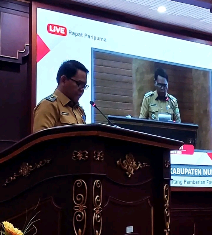 NUNUKAN – Wakil Bupati Nunukan H. Hanafiah, SE,. M.Si menyampaikan Jawaban Pemerintah daerah atas pandangan Umum Fraksi-Fraksi DPRD terhadap nota penjelasan Bupati Nunukan atas Rancangan Peraturan Daerah tentang pemberian Fasilitas/lnsentif dan kemudahan investasi di kabupaten Nunukan pada Rapat Paripurna ke 17 Masa Sidang I Tahun sidang p2023-2024.