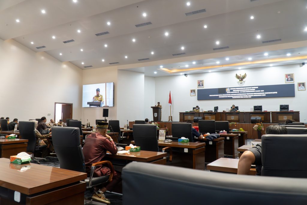 Dihadapan anggota DPRD Provinsi Kaltara, Gubernur Zainal didampingi Wakil Gubernur Kaltara, Dr. Yansen TP, M.Si memaparkan gambaran umum terkait laporan keuangan yang sudah dicapai di tahun 2023.
