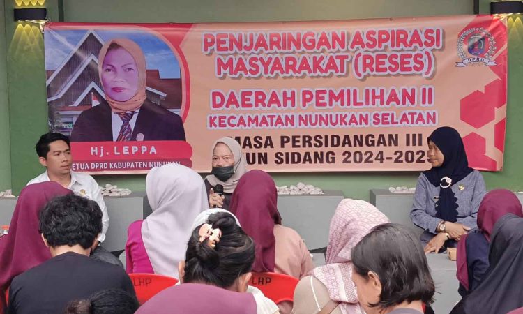 NUNUKAN – Ketua DPRD Kabupaten Nunukan, Hj. Leppa, menyerap langsung aspirasi masyarakat Kecamatan Nunukan Selatan dalam agenda Reses masa persidangan III tahun 2024–2025 yang digelar di Sassuni Cafe Nunukan, Kamis (30/10/2025).
