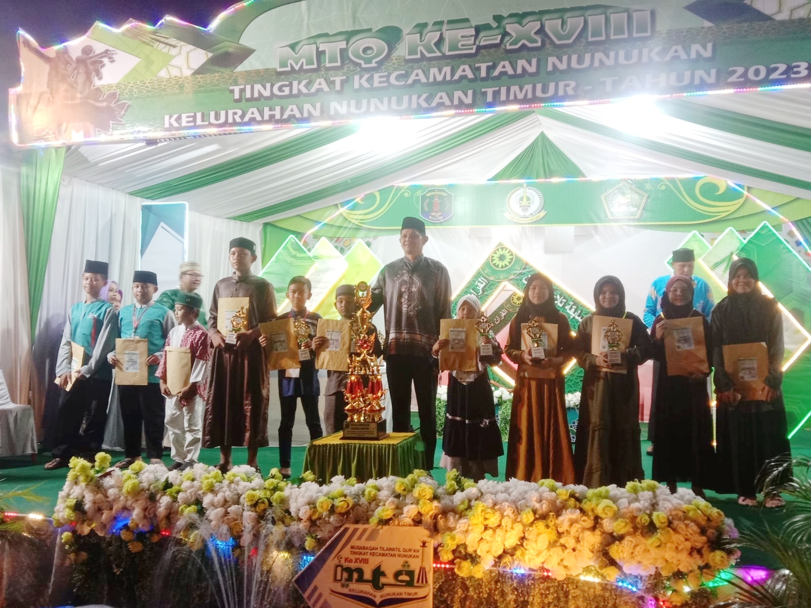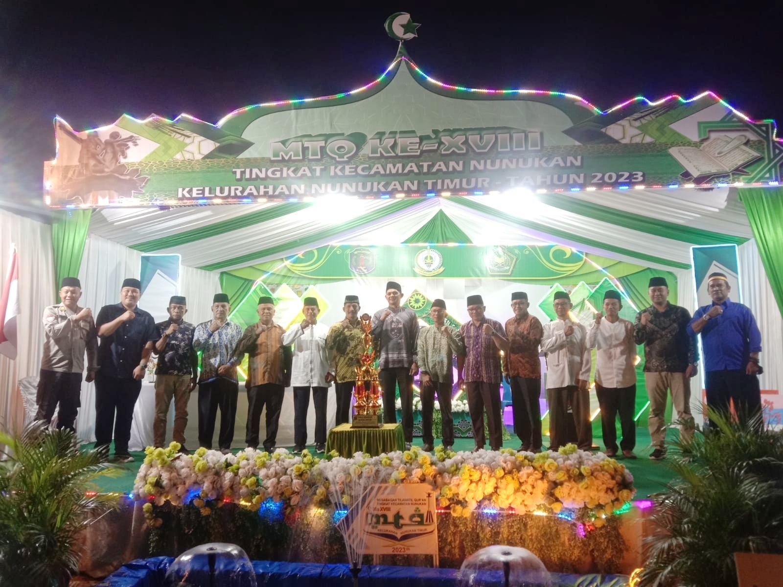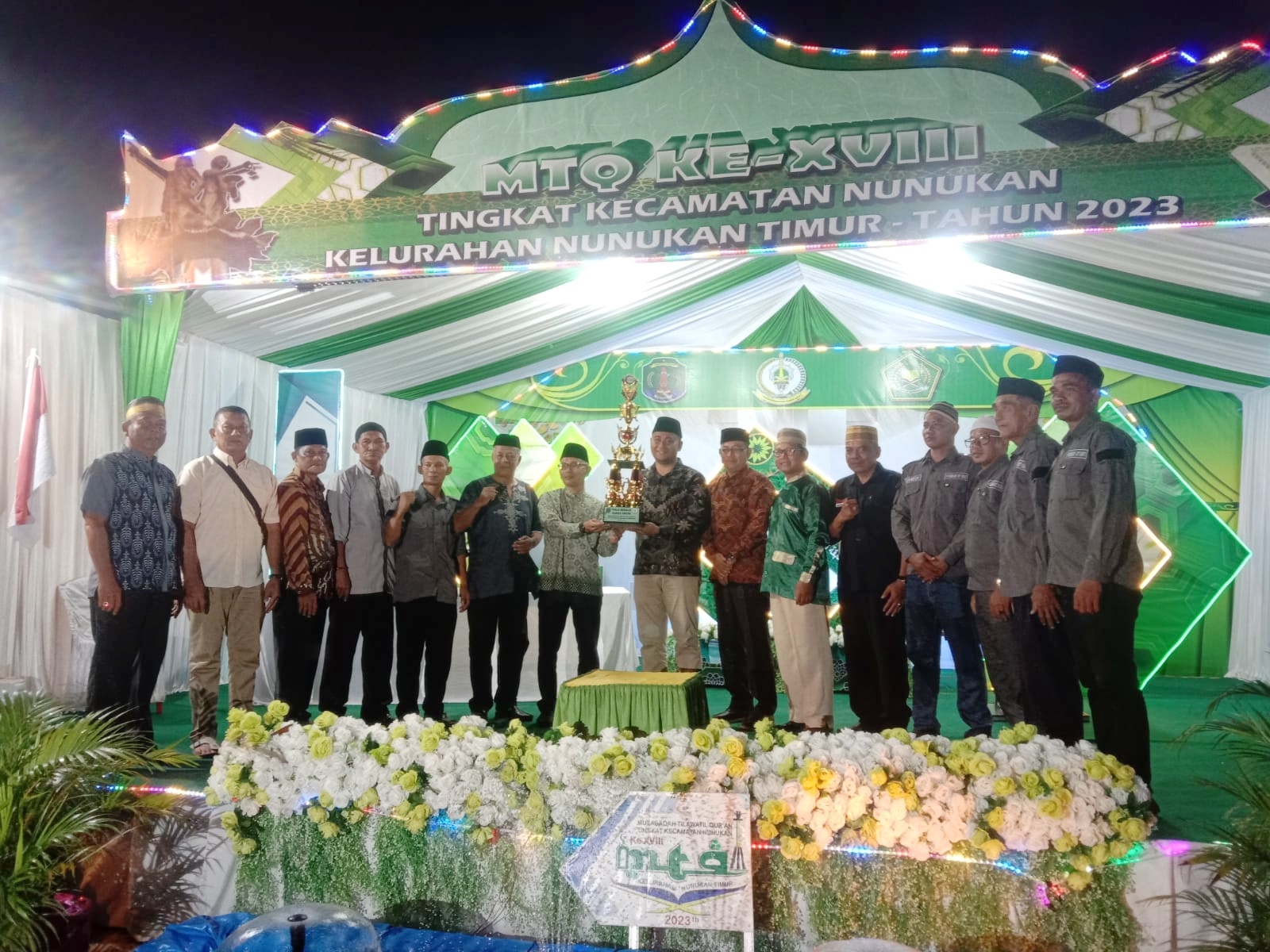 NUNUKAN – Bertempat di halaman kantor kelurahan Nunukan Timur, Musabaqah Tilawatil Qur’an (MTQ) XVIII (18) 2023 tingkat Kecamatan Nunukan dengan tema “Melalui MTQ Tingkat Kecamatan Nunukan Ke-XVIII, Bergerak Bersama Membangun Karakter Insan Qur’ani” resmi ditutup bersama dengan pengunguman pemenang, Minggu (19/02/2023) malam.