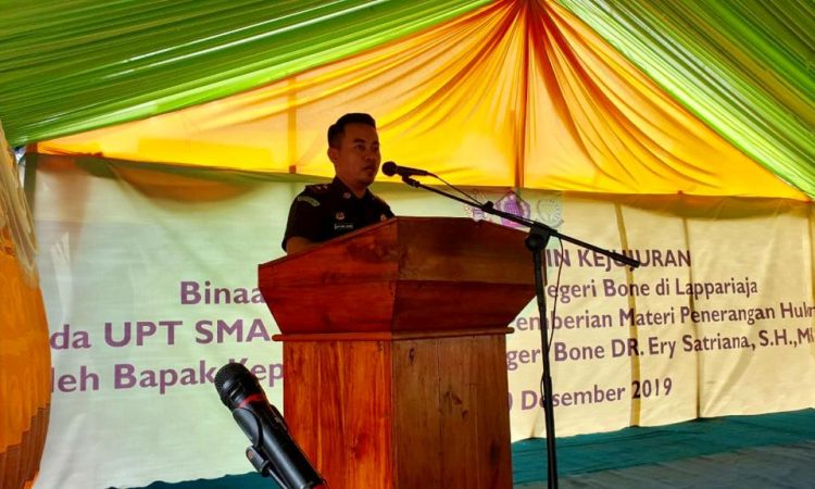 Selain meresmikan Kantin Kejujuran, kegiatan dilanjutkan dengan pemberian Penerangan Hukum oleh Cabjari Bone di Lapariaja dengan pemateri Kajari Bone Dr Ery Satriana SH MH kepada para Kepala Sekolah Se-Kabupaten Bone, para guru, serta para pelajar yang hadir untuk menanamkan nilai-nilai kesadaran hukum dengan mengetahui aturan sehingga dapat menghindari hukuman.