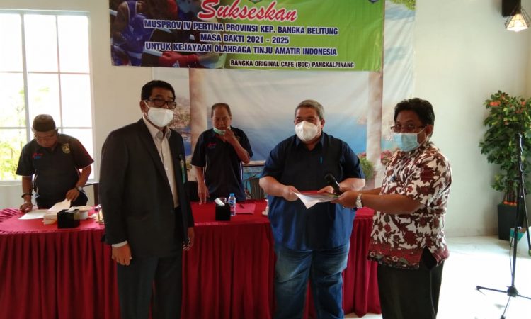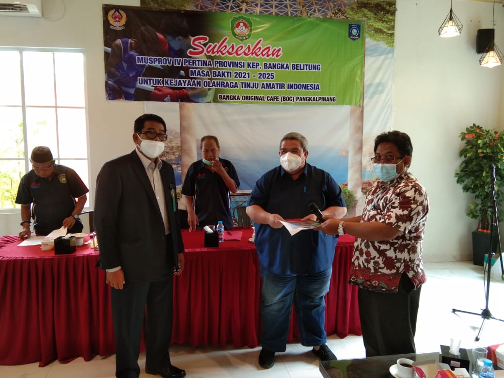 Pangkalpinang, Berandankri.news — PERHELATAN Musyawarah Daerah Provinsi (Musdaprov) Persatuan Tinju Amatir Indonesia (Pertina) yang diadakan pada hari Sabtu (20/02/2021) di Bangka Original Cafe (BOC) Pangkalpinang berjalan dengan sukses.