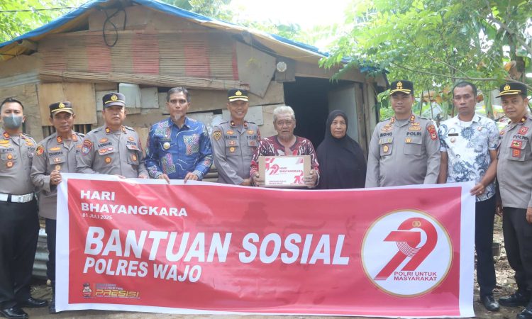 WAJO – Menyambut Hari Bhayangkara ke-79, Polres Wajo menggelar kegiatan bakti sosial berupa pembagian paket sembako kepada warga kurang mampu di wilayah Kecamatan Tempe, Kabupaten Wajo, Jumat (13/6/2025) pagi.