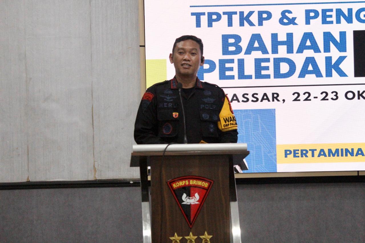 Pelatihan TPTKP dan Pengenalan Handak/bom bagi security PT. Pertamina Training & Consulting TA 2024 dibuka langsung Dansat Brimob Polda Sulsel Kombes Pol. Heru Novianto, S.I.K., M.Han. didampingi Kabag Ops Sat Brimob Polda Sulsel, AKBP Nur Ichsan, S.Sos., M.Si.