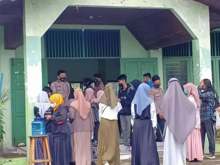 Anggota Sat Binmas Bripka Dedi Derisman, S.Sos, yang memberi himbahuan kepada mahasiswa tentang Kamtibmas dan penting vaksin dimasa pandemi virus Covid-19.