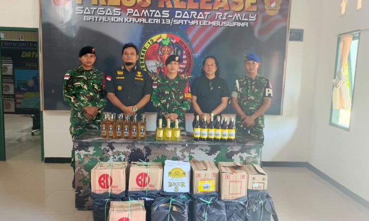 NUNUKAN – Satgas Pamtas RI–Malaysia Sektor Timur Yonkav 13/SL kembali menunjukkan komitmennya dalam menjaga keamanan wilayah perbatasan. Personel Pos Bambangan SSK I Satgas Pamtas RI–Malaysia Yonkav 13/SL bersama Unit Intel Kodim 0911/Nunukan berhasil menggagalkan upaya penyelundupan minuman keras ilegal sebanyak 146 botol di jalur tikus perbatasan wilayah Desa Bambangan, Kecamatan Sebatik Barat, Kabupaten Nunukan, Provinsi Kalimantan Utara, pada Minggu malam (28/12/2025).