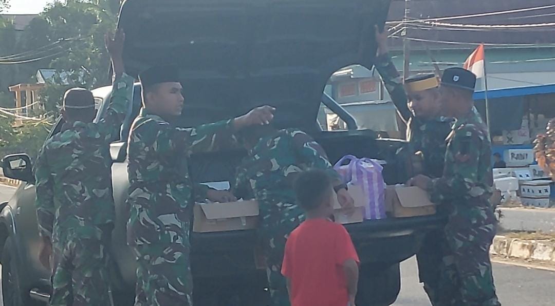 NUNUKAN – Bertempat diJl. Poros, Desa Aji Kuning, Kecamatan Sebatik Tengah, Kabupaten Nunukan, Provinsi Kalimantan Utara, dibulan Ramadan penuh berkah ini, Prajurit TNI Satgas Pamtas RI-Malaysia Yonif 621/Manuntung Pos Aji Kuning ikut berbagi kepada masyarakat dengan membagikan takjil berbuka puasa, Senin(27/03/2023).