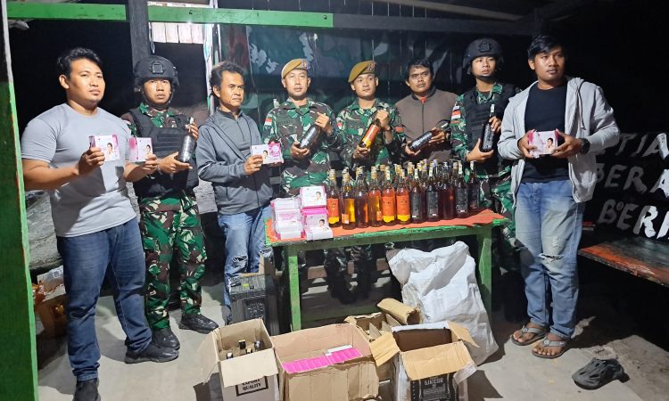 NUNUKAN – Satuan Tugas Pengamanan Perbatasan (Satgas Pamtas) RI-Malaysia Yonif Pertahanan Udara (Yon Arhanud) 8/Marawaca Bhuana Cakti (MBC) bersama Satgas BAIS berhasil gagalkan penyelundupan minuman keras (Miras) serta kosmetik ilegal di wilayah pos Satgas Pamtas Bukit Keramat, Desa Liang Bunyu, Kecamatan Sebatik Barat, Jumat (17/05/2024).