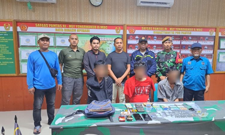Satgas Pamtas Yon Arhanud 8/MBC dan Tim Gabungan Berhasil Ringkus Tiga Pelaku serta Sabu 37,11 g di Sei Menggaris