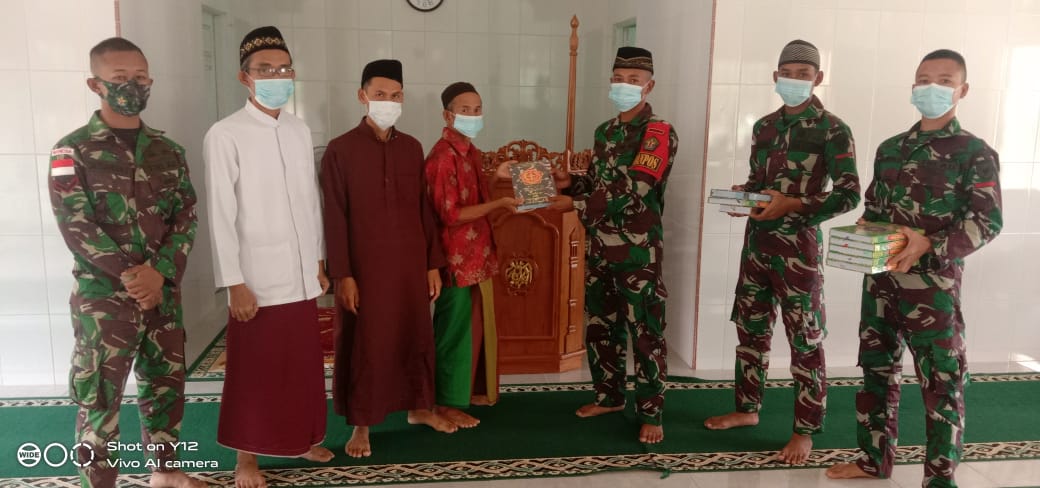 Dalam membentuk akhlak dan moral remaja yang berada di perbatasan dan juga guna mencipatakan keharmonisan komunikasi sosial yang baik, Anggota Satgas Pamtas RI-Malaysia Yonif Mekanis 643/WNS memberikan bantuan Al-Qur’an kepada Masjid Baitul Mugni di Dusun Bantan, Desa Bungkang, Kec. Sekayam, Kab. Sanggau.