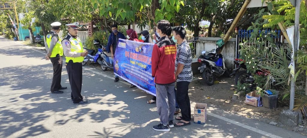 Dalam pelaksanaannya, anggota Satlantas Polres Sinjai membentangkan spanduk ”Sosialisasi Operasi Keselamatan 2021″ kepada pengguna jalan yang melintas sekaligus menghimbau memakai masker .