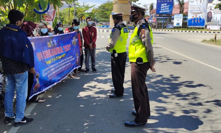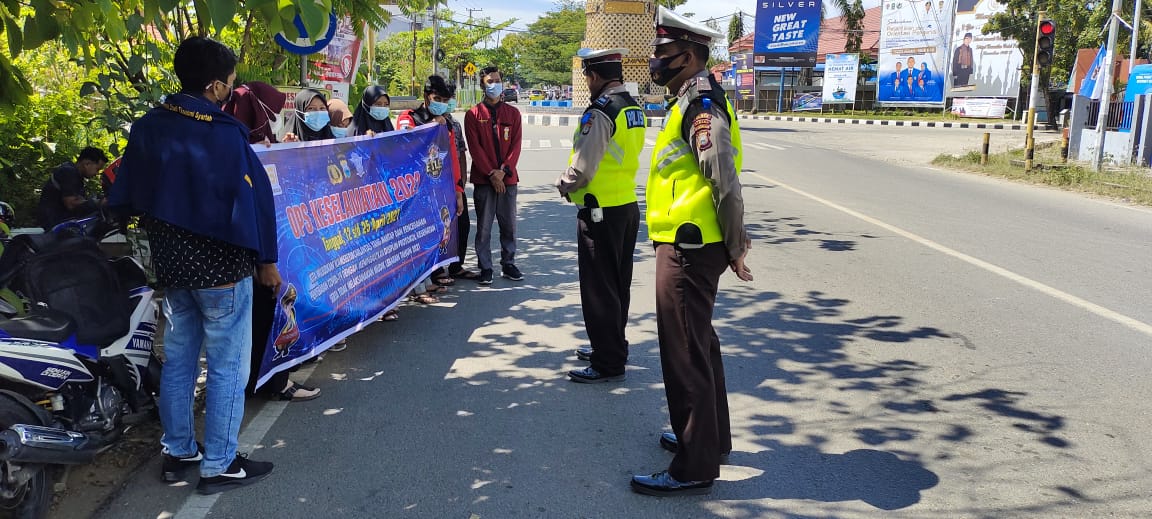 Dalam pelaksanaannya, anggota Satlantas Polres Sinjai membentangkan spanduk ”Sosialisasi Operasi Keselamatan 2021″ kepada pengguna jalan yang melintas sekaligus menghimbau memakai masker .