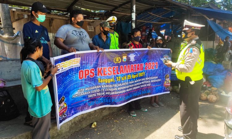Sinjai – Berandankrinews.com Dalam Rangka Operasi Keselamatan 2021, Satlantas Polres Sinjai gencar melaksanakan sosialisasi Keselamatan berlalu lintas dan protokol kesehatan. kali ini tepatnya dipasar sentral Sinjai dan terminal jalan persatuan raya, Kelurahan Balangnipa, Kecamatan Sinjai Utara, Kabupaten Sinjai. Minggu (25/4/2021).