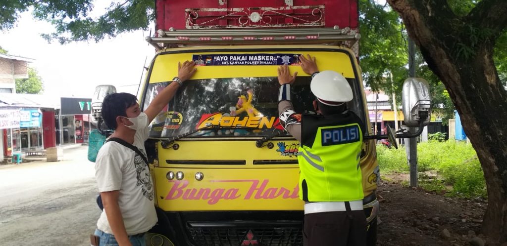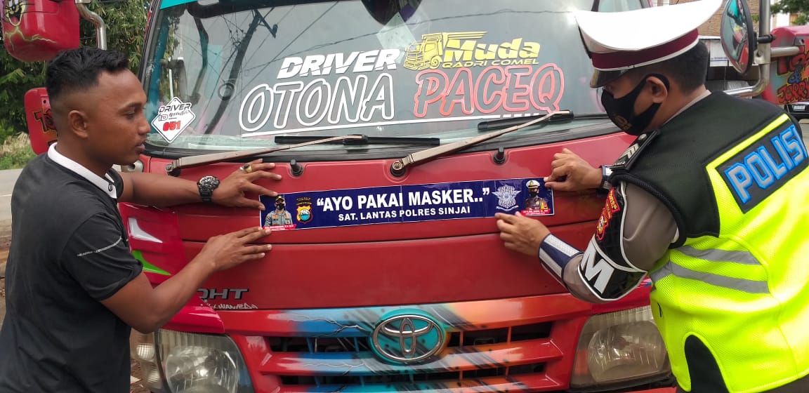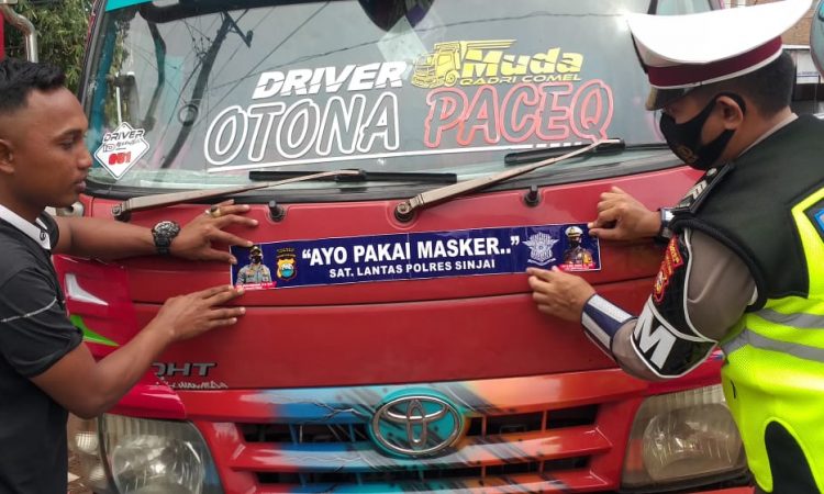 Sinjai – Berandankrinews.com Sat Lantas Polres Sinjai gencar melaksanakan Sosialisasi Protokol Kesehatan. dengan memasang stiker “Ayo Pakai Masker” kepada pengendara dalam rangka meningkatkan kepatuhan masyarakat disiplin protokol kesehatan.