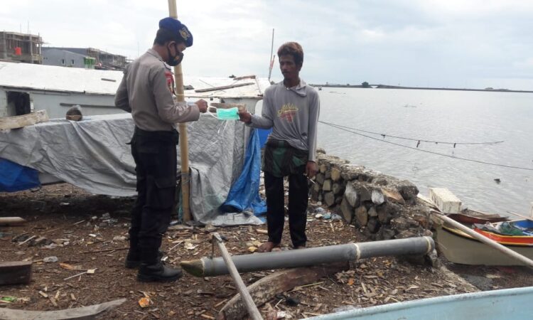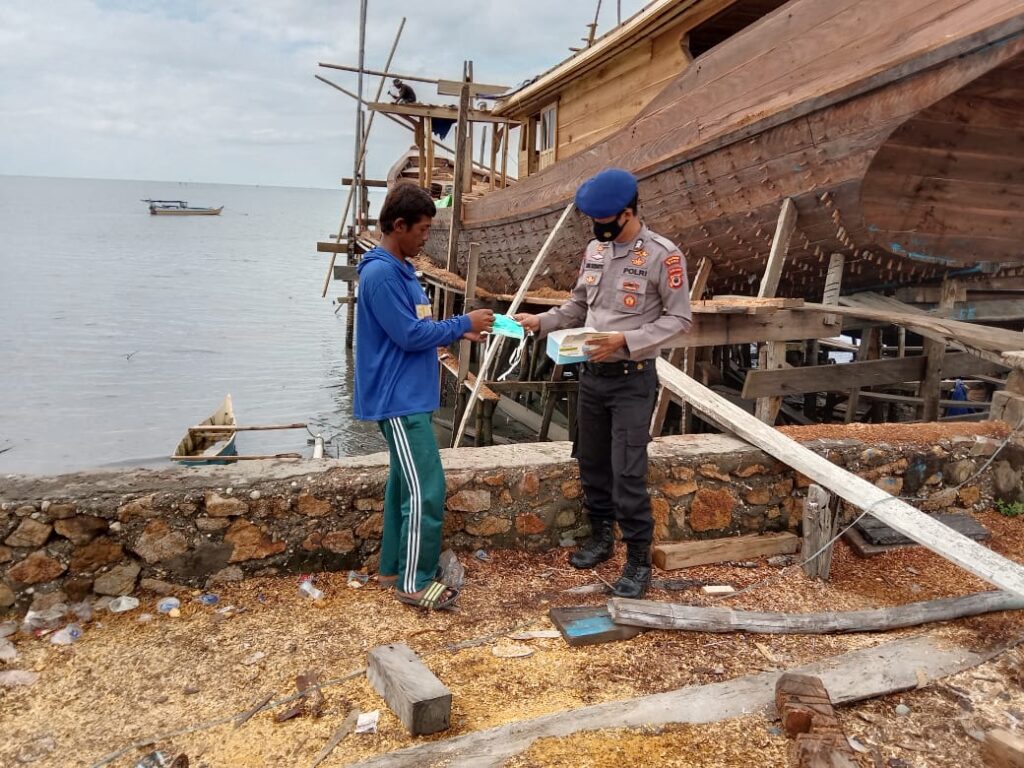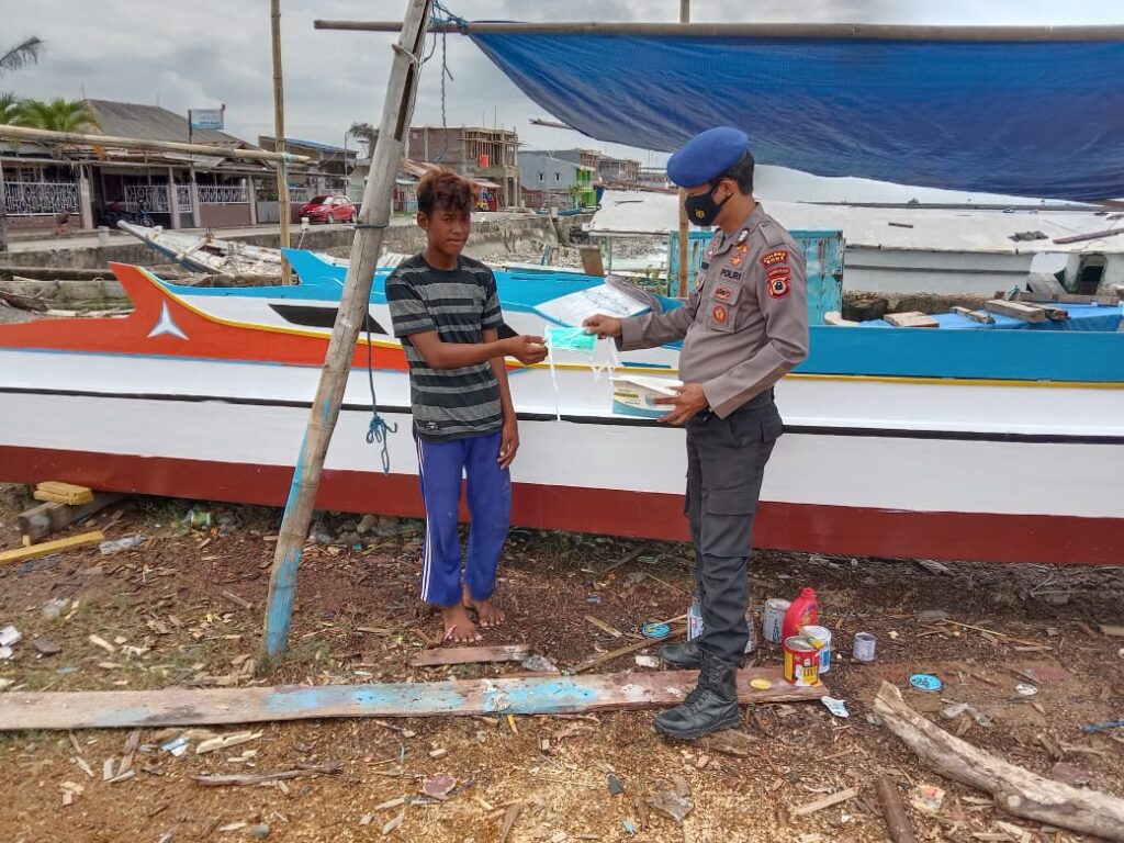 Satpolair Polres Bone Bagi Masker Kepada Warga untuk tekan laju sebaran Covid-19 Saat Pantau Wilayah Pesisir
