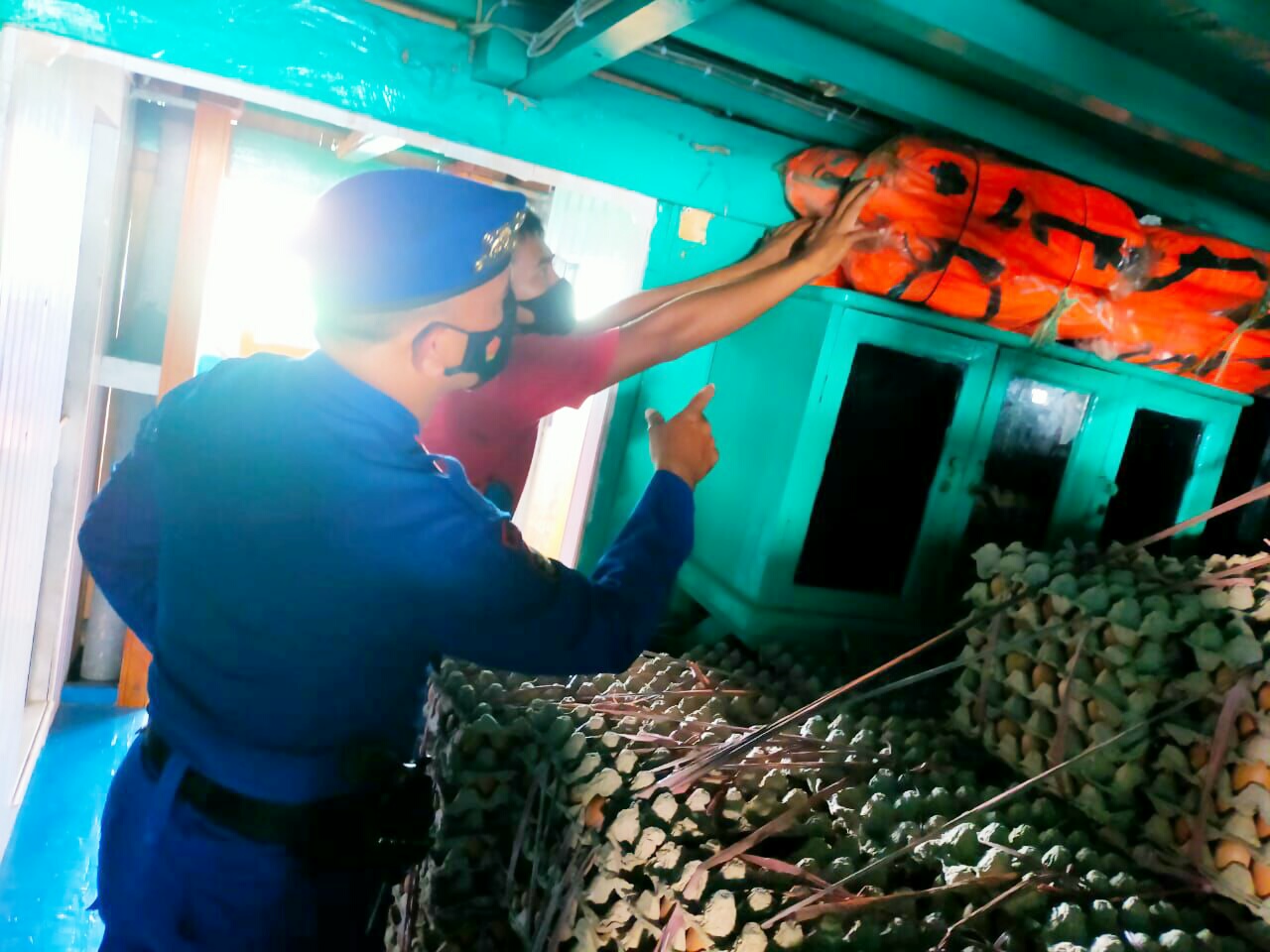 Kegiatan tersebut dilakukan oleh Kasubnit Binmas Air Satpolair Polres Bone Aiptu Edy Mulyadi bersama dengan Kanit Harkan Kapal Satpolair Polres Bone Aipda Made Indra Jaya saat memeriksa KLM (kapal layar motor) Titipan Ilahi yang sementara pemuatan barang.