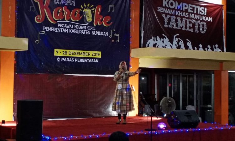 NUNUKAN – Lomba Karaoke Khusus Aparatur Sipil Negara (ASN) yang digelar di PARAS Perbatasan disambut antusias. Sebanyak 90 peserta dari berbagai OPD turut ambil bagian dalam lomba yang baru pertama kali dilaksanakan itu. Tidak hanya dari kalangan staf, nama – nama para kepala dinas di Lingkungan Pemerintah Kabupaten Nunukan ada dalam daftar peserta lomba karaoke itu, seperti Kepala Dinas Sosial Jabbar, Kepala Dinas Perdagangan Dian Kusumanto, dan Kepala BKPSDM Kaharuddin.