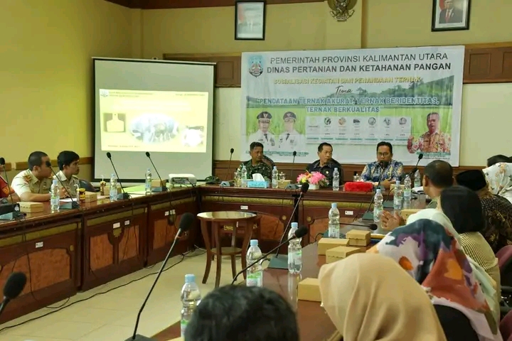 NUNUKAN – Bupati Nunukan yang di wakili Sekertaris Daerah Nunukan Serfianus membuka sosialisasi penandaan dan hewan ternak dalam rangka pengendalian dan penanggulangan penyakit kuku dan mulut pada hewan yang diselenggarakan oleh Dinas Pertanian dan Ketahan Pangan Provinsi Kalimantan Utara, di laksanakan diruang pertemuan Lantai 1 Kantor Bupati Nunukan, Jum’at 24 November 2023.