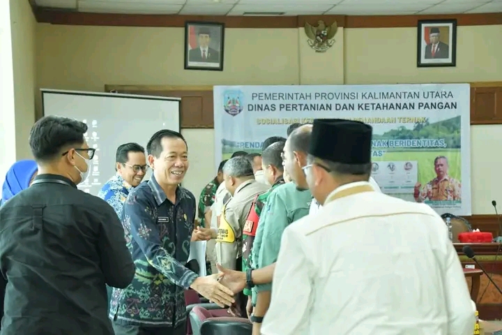 NUNUKAN – Bupati Nunukan yang di wakili Sekertaris Daerah Nunukan Serfianus membuka sosialisasi penandaan dan hewan ternak dalam rangka pengendalian dan penanggulangan penyakit kuku dan mulut pada hewan yang diselenggarakan oleh Dinas Pertanian dan Ketahan Pangan Provinsi Kalimantan Utara, di laksanakan diruang pertemuan Lantai 1 Kantor Bupati Nunukan, Jum’at 24 November 2023.