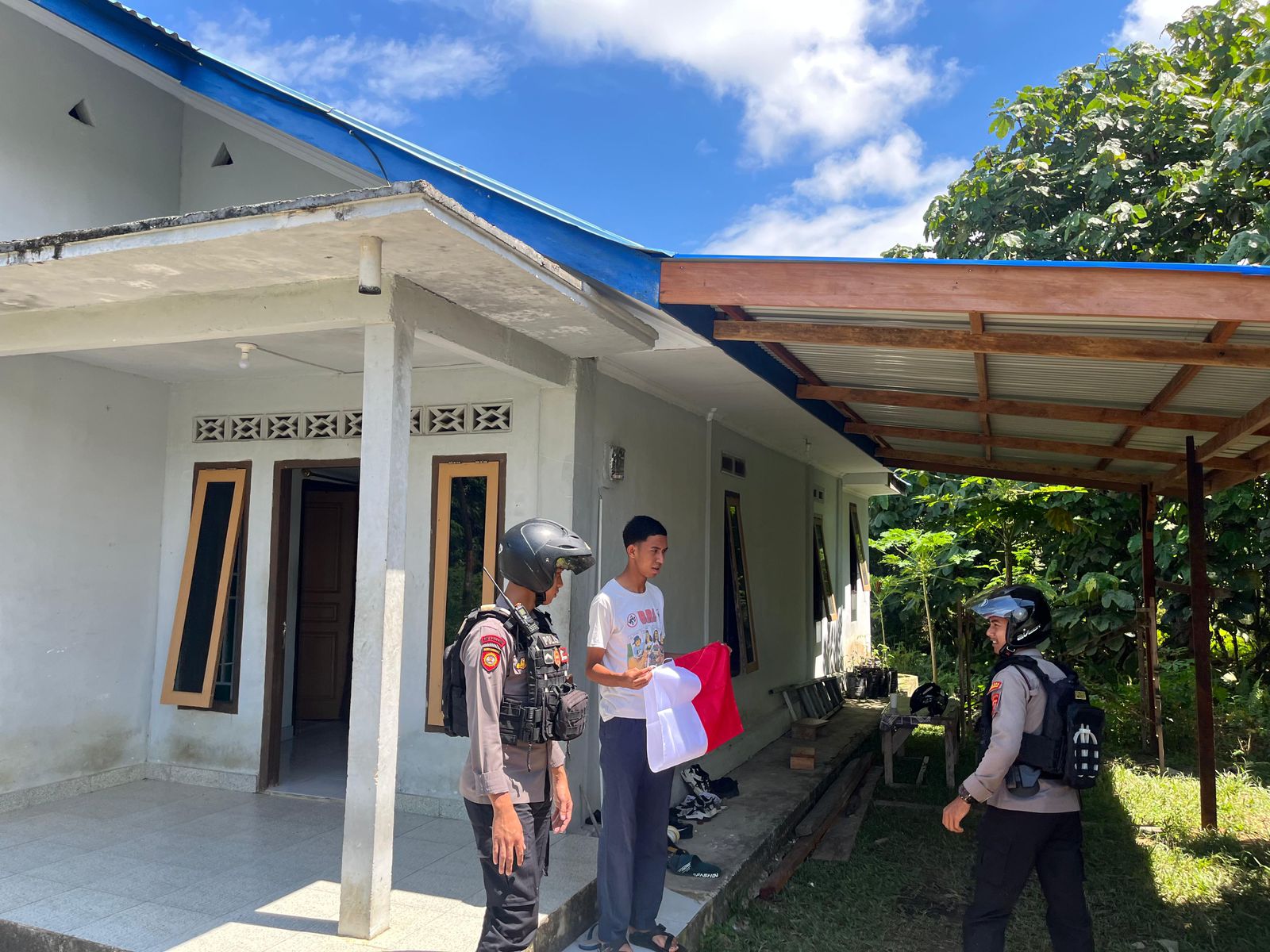NUNUKAN – Menyambut HUT ke-80 Kemerdekaan Republik Indonesia tahun 2025, Personel Polsek Sembakung dan Sat Samapta Polres Nunukan menggelar kegiatan pembagian dan pemasangan Bendera Merah Putih kepada masyarakat pada Minggu (10/08/2025).