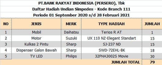 Adapun hadiah dan jumlahnya yang dibagi dalam pengundian Ini