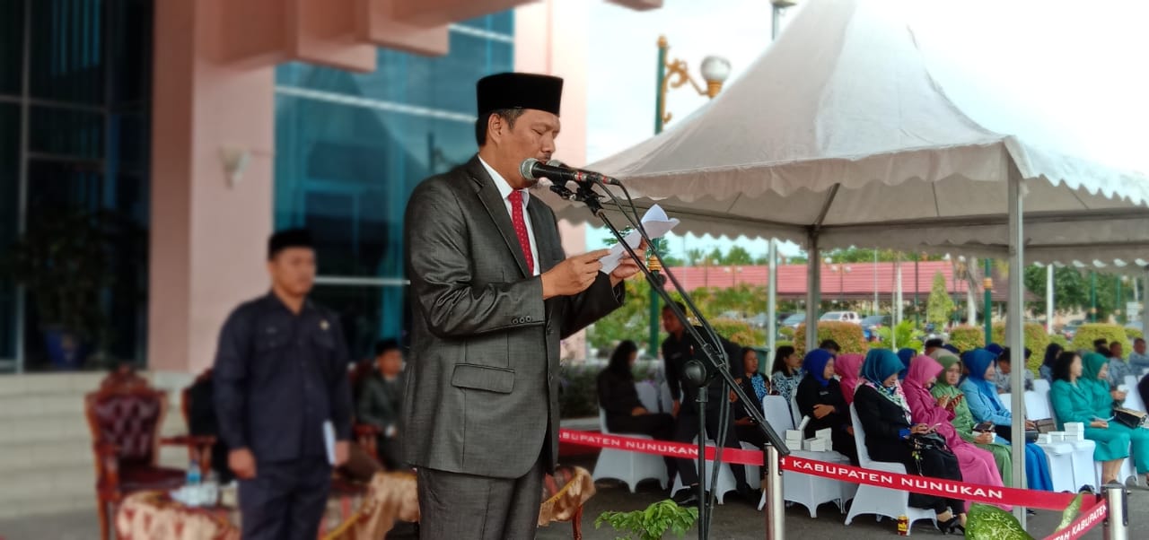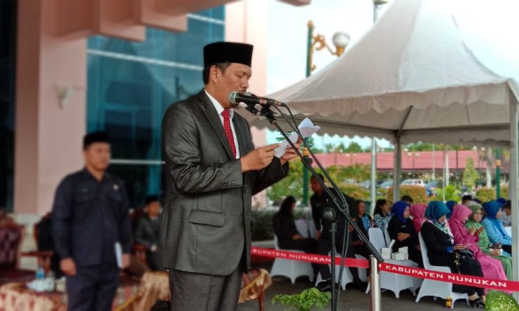 NUNUKAN – Upacara Peringatan Hari Bela Negara Ke – 71 di Halaman Kantor Bupati Nunukan, Kamis (19/12) yang diikuti oleh jajaran TNI/Polri, ASN, organisasi pemuda, dan kalangan pelajar berlangsung khidmat. Asisten Pemerintahan dan Kesra Sekretariat Daerah Kabupaten Nunukan Muhammad Amin menjadi Inspektur Upacara menggantikan Bupati Nunukan Hj. Asmin Laura Hafid yang sedang berada di Kecamatan Krayan untuk menyambut kedatangan Presiden Republik Indonesia Joko Widodo.