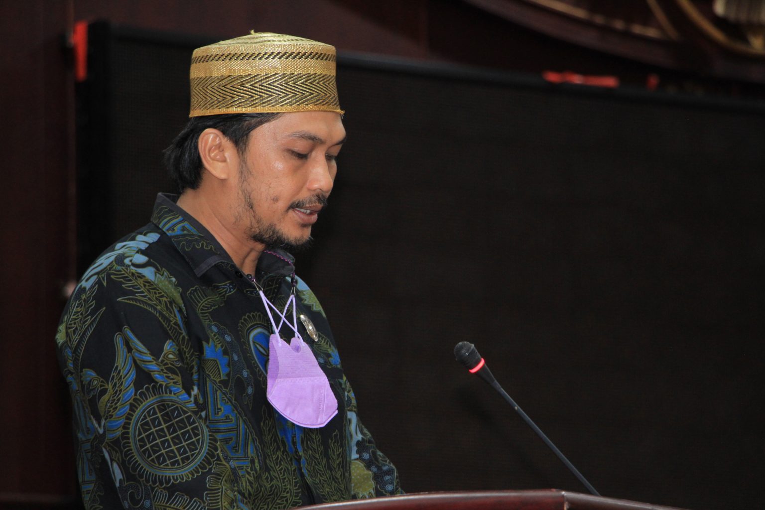 Usai penyampaian laporan Badan Anggaran terkait Rancangan Peraturan Daerah Kabupaten Nunukan, Sekretaris DPRD Nunukan, Muhammad Efendi, menyampaikan Surat Keputusan DPRD tentang Persetujuan anggota dewan terhadap Pertanggungjawaban Pelaksanaan APBD 2021.