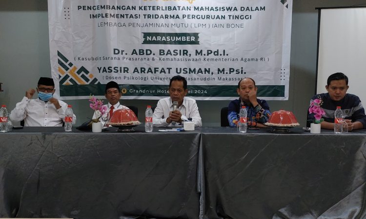 Sementara itu Rektor IAIN Bone Prof. Dr. H. Syahabuddin, M.Ag. mengapresiasi kegiatan yang dilaksanakan LPM. Ia berharap hal ini bisa berkontribusi kepada pengembangan institusi.