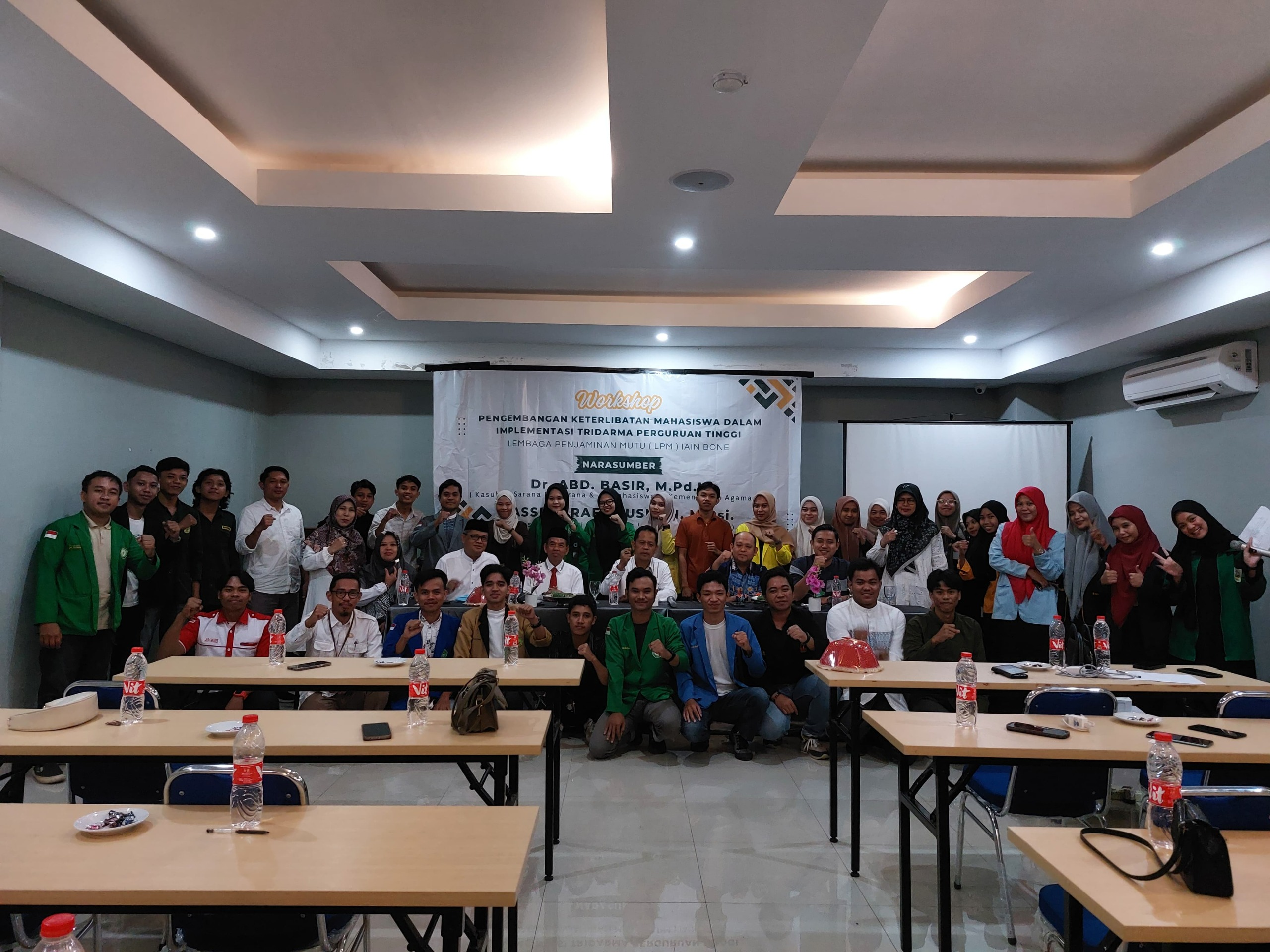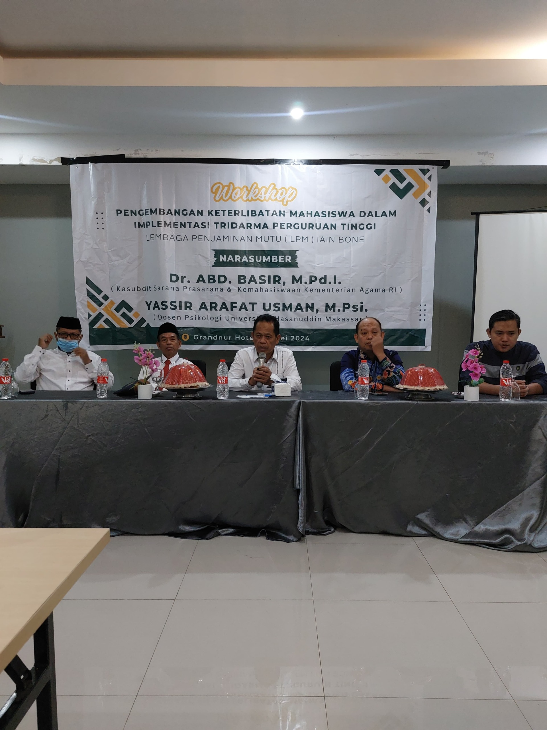Lembaga Penjaminan Mutu (LPM) IAIN Bone libatkan mahasiswa dalam impelementasi Tridarma Perguruan Tinggi melalui kegiatan workshop di Grand Nur Hotel, Senin (27/5/2024)