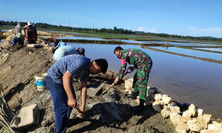 Bone-Tadang Palie –Berandankrinews.com. Dalam upaya mempermudah akses warga dalam beraktivitas sehari hari dan upaya untuk mewujudkan pemerataan pembangunan di Desa Tadang Palie Anggota Koramil 1407-13/Sibulue Kopda Agung melaksanakan kegiatan Kerja Bakti bersama warga Desa Binaan membangun Jalan Tani di Dusun Sampobea Desa Tadang Palie.Kecamatan Sibulue Kab.Bone. Sabtu (12/06/2021).