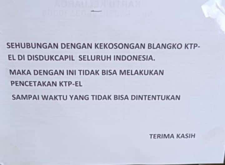 “Sejak 3 (tiga) hari yang lalu memang kita tidak bisa layani pembuatan KTP-el dikarenakan stok blangko kosong di Disdukcapil seluruh Indonesia, menurut informasi di bulan agustus baru ada stok blangko lagi,” ujar Mesak saat ditemui di Kantor Disdukcapil Kab.Nunukan pada Kamis (27/07/2023).