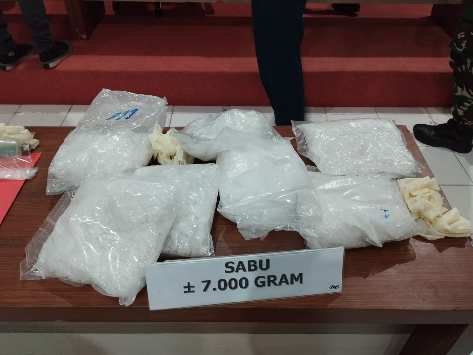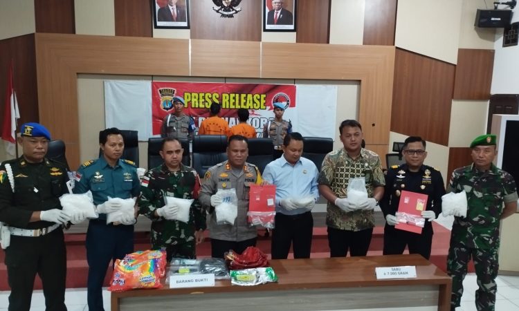 NUNUKAN – Kepolisian Resor (Polres) Nunukan melalui Sat Resnarkoba mengungkap kasus tindak pidana narkotika golongan I jenis sabu dengan berat bruto ± 7.000 gram pada siaran pers, bertempat di aula Sebatik, markas komando (Mako) Polres Nunukan, Kamis (30/05/2024) siang.