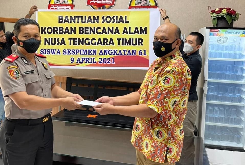 Melihat hal itu, Peserta Didik Sespimmen (Serdik) Angkatan ke 61, Suprianto dengan cepat memberikan bantuan tanggap bencana bagi masyarakat baik di wilayah NTT. (9/04/2021)