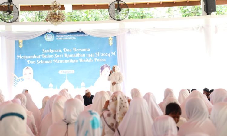 TANJUNG SELOR – Ketua Tim Penggerak Pemberdayaan Kesejahteraan Keluarga (TP PKK) Kalimantan Utara (Kaltara) , Hj Rahmawati Zainal,S.H., gelar syukuran dan doa bersama masyarakat menyambut Ramadhan 1445 Hijriah, bertempat di Pendopo Rumah Jabatan Gubernur Kaltara, Senin (11/3).