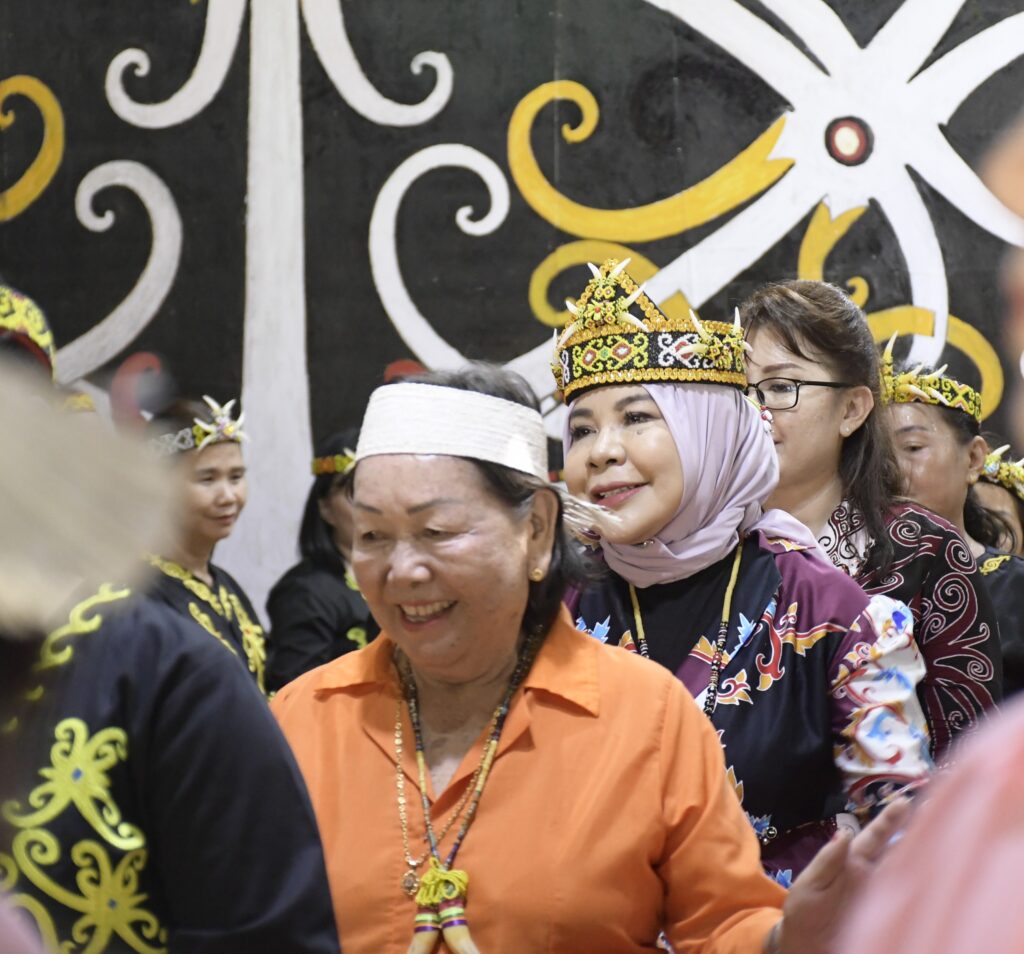TANJUNG SELOR – Ketua Tim Penggerak Pemberdayaan Kesejahteraan Keluarga (TP PKK), Kalimantan Utara (Kaltara), Hj. Rahmawati Zainal,S.H., menghadiri syukuran pasca panen “Pemong Bangen Lepa Ajau” oleh masyarakat Desa Teras Nawang, Sabtu (8/6).