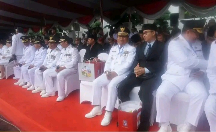 Wakil Bupati Nunukan, H. Hanafiah, SE, M.Si tampak hadir duduk di tenda kehormatan bersama para bupati dan walikota seluruh Indonesia.