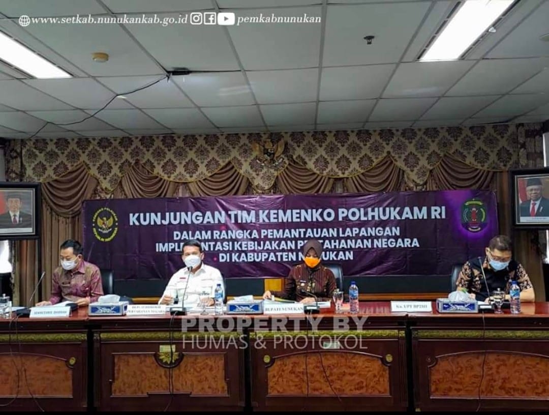 NUNUKAN – Bertempat di ruang VIP lantai IV Kantor Bupati Nunukan, Bupati Nunukan Hj. Asmin Laura Hafid, SE., M.Si., P.hD menerima kunjungan kerja Tim Kemenkopolhukam RI, Kamis (01/07).