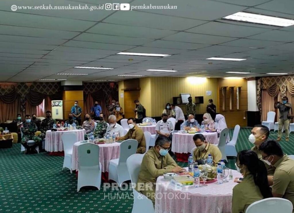Tampak turut hadir dalam pertemuan ini Kepala BPPW Kementerian PUPR Prov. Kaltara Andi Hakim Arrasyid, S.T., M.Sc., hadir pula Sekretaris Daerah Kab. Nunukan Serfianus, S.IP., M.Si., Kepala BP2MI Nunukan Kombes Pol Hotma Viktor Sihombing, S.I.K., perwakilan unsur Forkopimda Kab. Nunukan, Kepala BNN Kab. Nunukan, dan Kepala OPD di lingkungan PemKab Nunukan.